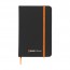 Praktisch en handzaam notitieboekje in A6 formaat. Met 80 pagina's crèmekleurig gelinieerd papier, stevige PU cover, elastische sluiting, gebonden rug en zijden leeslint.
